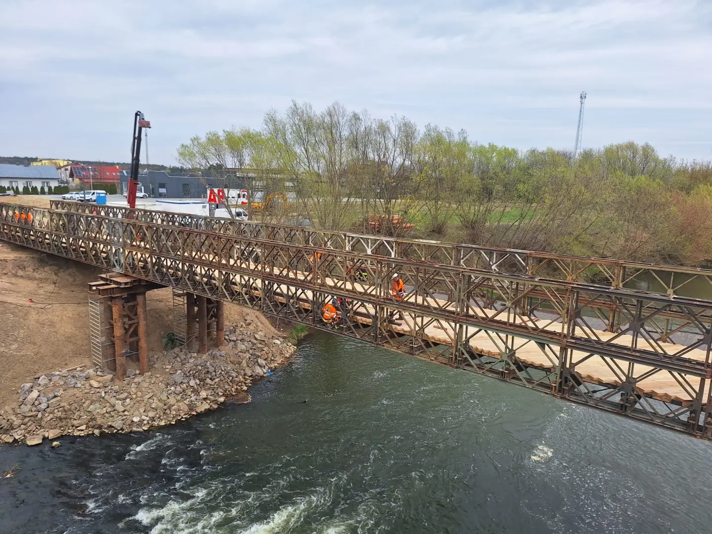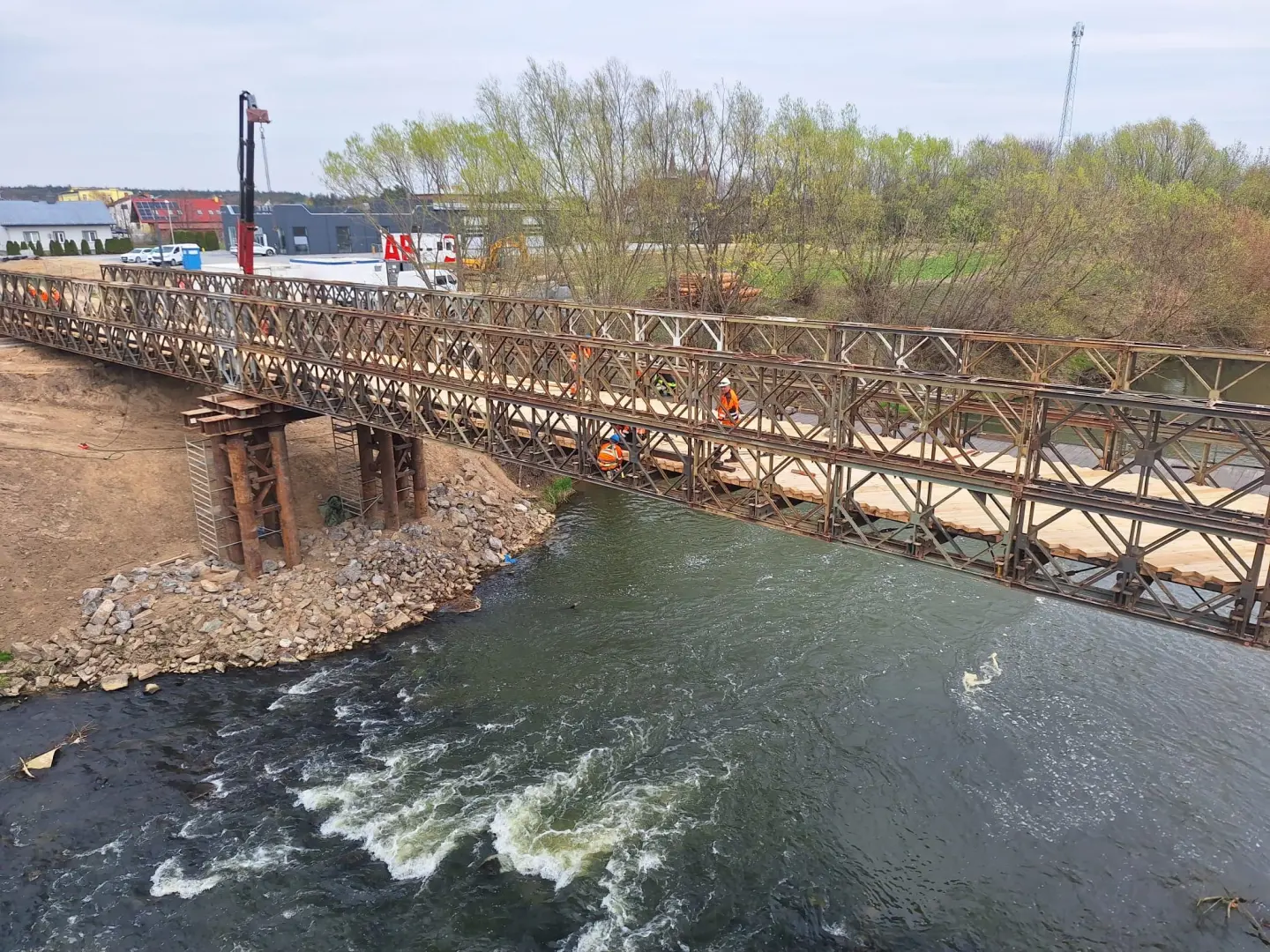 Budowa tymczasowego mostu w Dąbrówkach / fot. Strabag