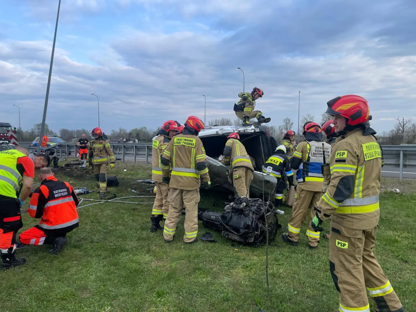 Do wypadku skierowano kilkudziesięciu funkcjonariuszy straży pożarnych, w tym z KP PSP Łańcut, KP PSP Przeworsk, OSP Budy Łańcuckie oraz OSP Korniaktów Północny. Strażacy zabezpieczyli miejsce zdarzenia, pomogli ratownikom w udzialenieu pomocy poszkodowanymi spradzili, czy w pojeździe nia ma innych osób.