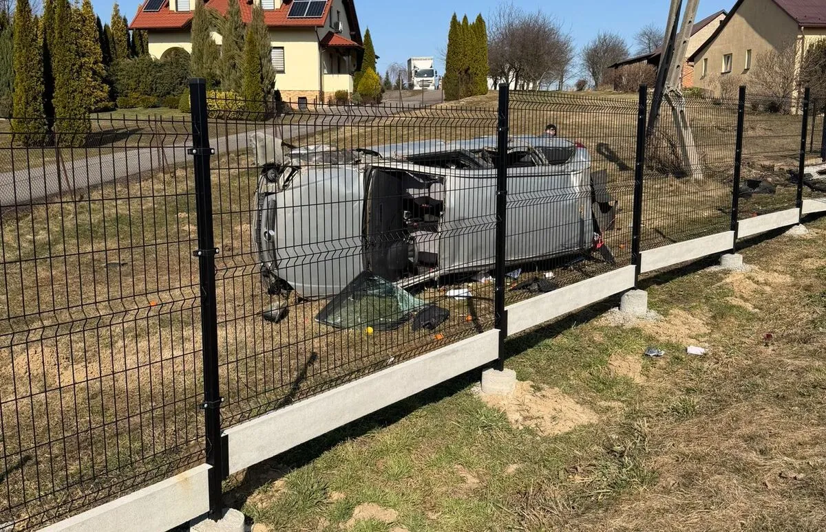 Do zdarzenia doszło w poniedziałek po godz. 12:00 drogowym na ulicy Beskidzkiej w Rzeszowie. Pracujący na miejscu policjanci ustalili, że 47-ltni mężczyzna jadać oplem, stracił panowanie nad samochodem, następnie uderzył w słup energetyczny i staranował ogrodzenie prywatnej posesji. Pojazd przewrócił się na bok.