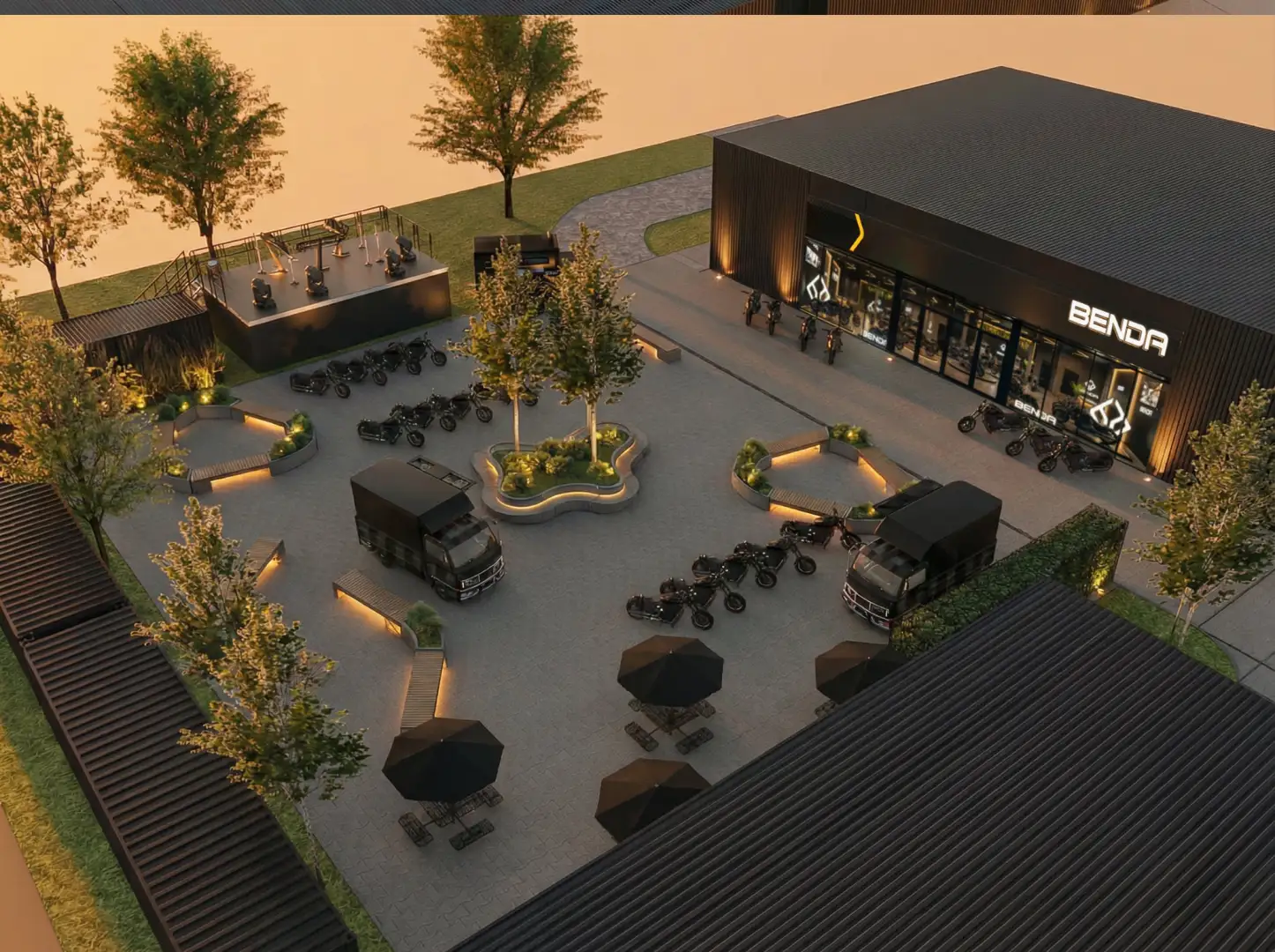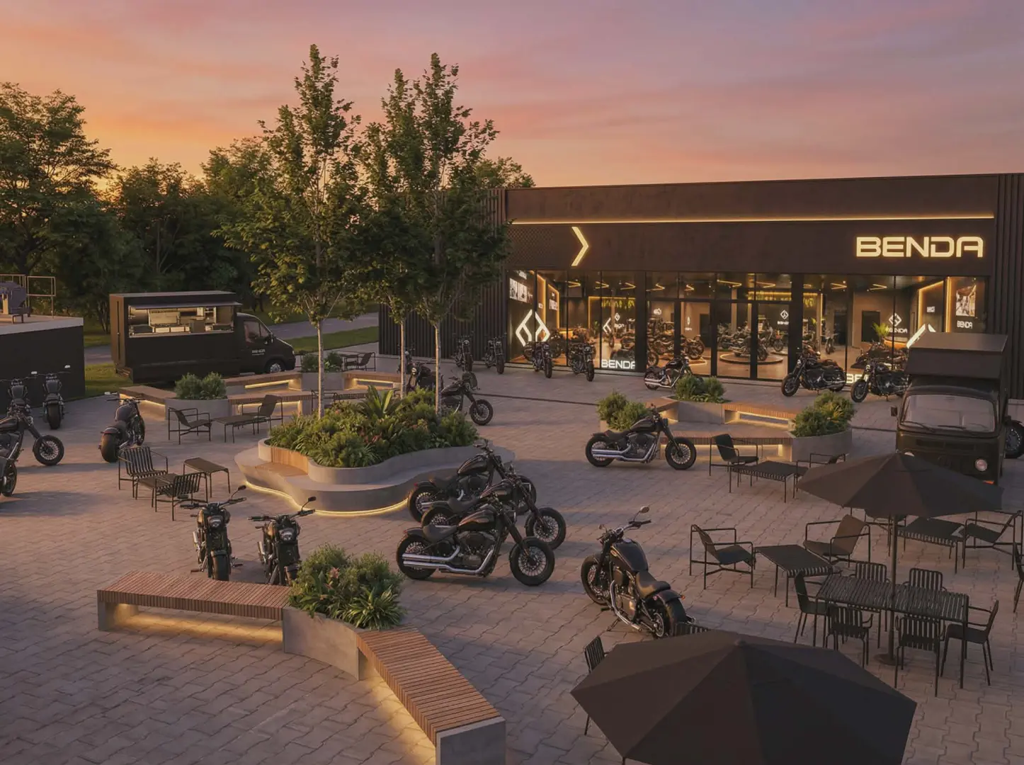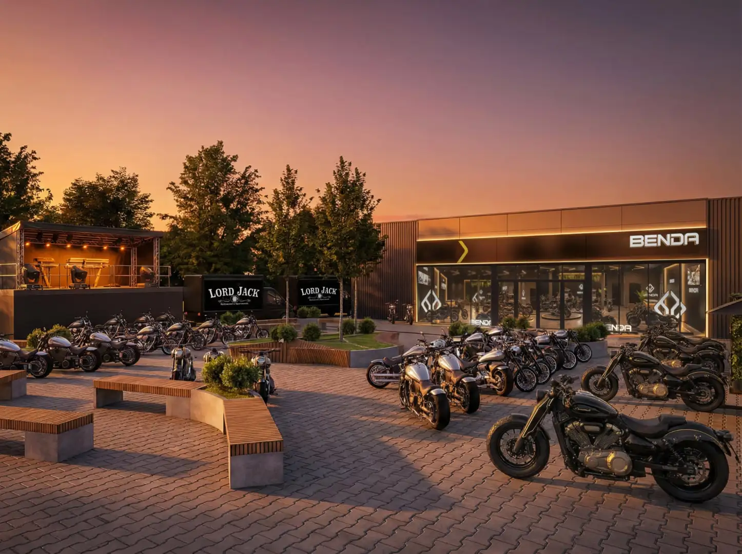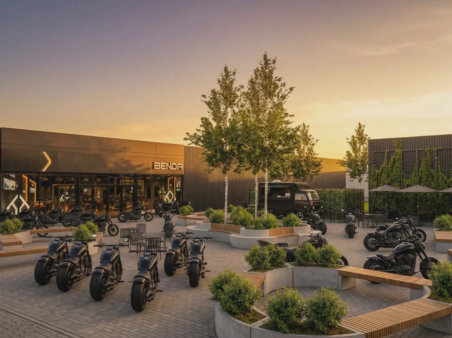 Wraz z salonem i serwisem marki Benda, na terenie przy ul. Ludwika Chmury 4 powstaje plac eventowy o powierzchni 1500 mkw. Przez cały sezon motocyklowy będą na nim organizowane wydarzenia, premiery oraz koncerty.