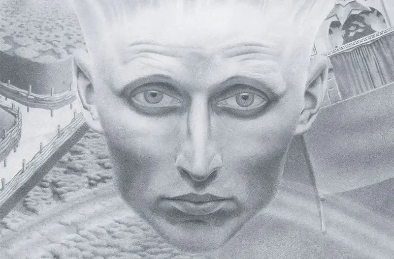 Prezentowane dzieła mają często rozbudowaną, narracyjną formę. Obok scen z codzienności – takich jak wyjazdy plenerowe – pojawiają się także odniesienia do doświadczeń wojennych. Część kompozycji przybiera charakter oniryczny i surrealistyczny, podejmując tematykę zjawisk nadprzyrodzonych. W innych pracach widoczna jest inspiracja kulturą słowiańską, co nawiązuje do przyjętego przez artystę imienia Słońcesław z Żołyni.