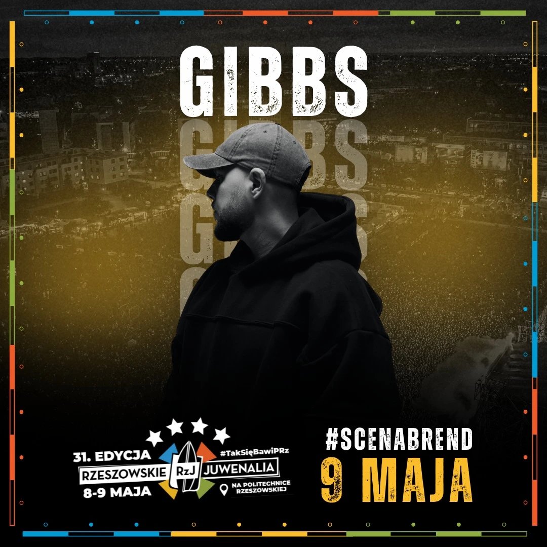Organizatorzy Rzeszowskich Juwenaliów zaskoczyli i ogłosili jeszcze jednego wykonawcę tegorocznej edycji wydarzenia. 9 maja na scenie Brend wystąpi Gibbs.