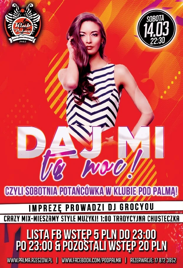 Zapraszamy w sobotę, 14 marca, na wspólną regenerację na parkiecie po całym tygodniu. O oprawę muzyczną zadba DJ Grocyou, który zaserwuje Wam energetyczną mieszankę stylów: od hitów Club i Latino, przez R&B i Disco-Polo, aż po nieśmiertelne polskie przeboje.
