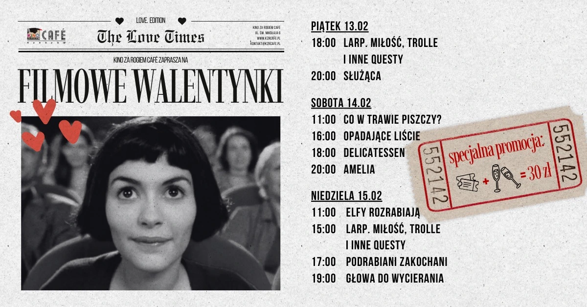 Kino za Rogiem Café zaprasza na przebojowe seanse zarówno romantyków, jak i tych, którzy przed serduszkami i maślanym wzrokiem wolą uciec do kina!