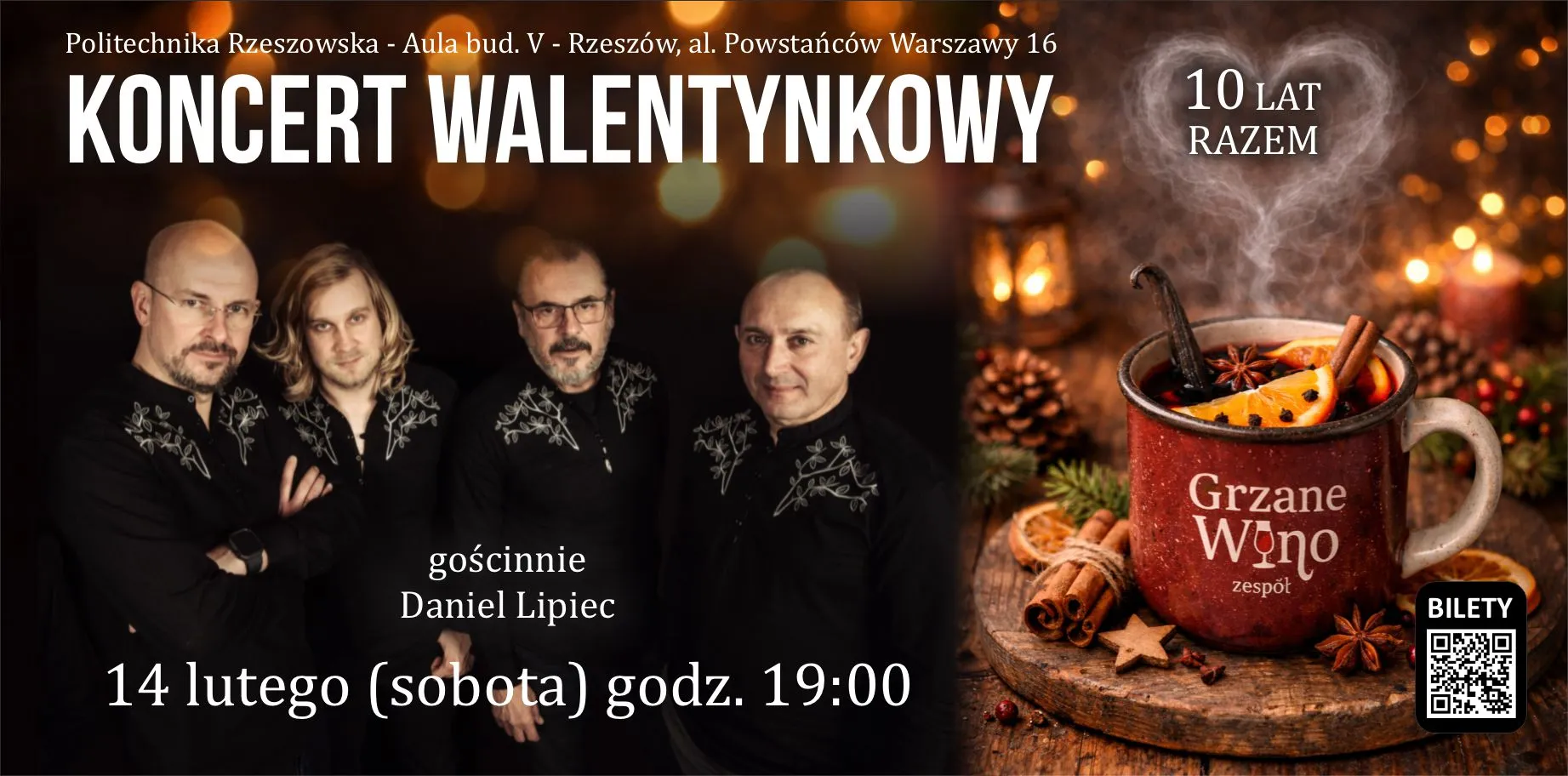 14 lutego 2026 roku Grzane Wino wspólnie z publicznością będzie świętować 10-lecie zespołu. Ten wyjątkowy, walentynkowy koncert będzie nie tylko podsumowaniem dotychczasowej drogi, ale również uroczystym otwarciem jubileuszowej trasy koncertowej.