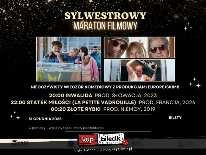 Nieoczywisty wieczór komediowy z produkcjami europejskimi! Kino za Rogiem Café zaprasza do powitania 2026 z zabawnymi i pełnymi zaskakujących zwrotów akcji filmami. Pokażemy tytuły, które nie miały regularnej dystrybucji w Polsce, które rozgrzeją atmosferę i zagwarantują wejście w Nowy Rok z szerokim uśmiechem.