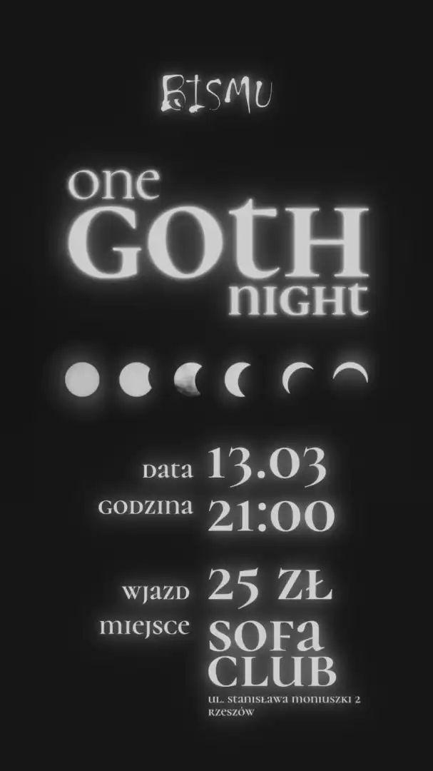 13 marca w SOFA CLUB wchodzimy w mroczniejszy, tajemniczy vibe, noc inspirowaną estetyką goth, nocą i muzyką, która najlepiej brzmi po zmroku.