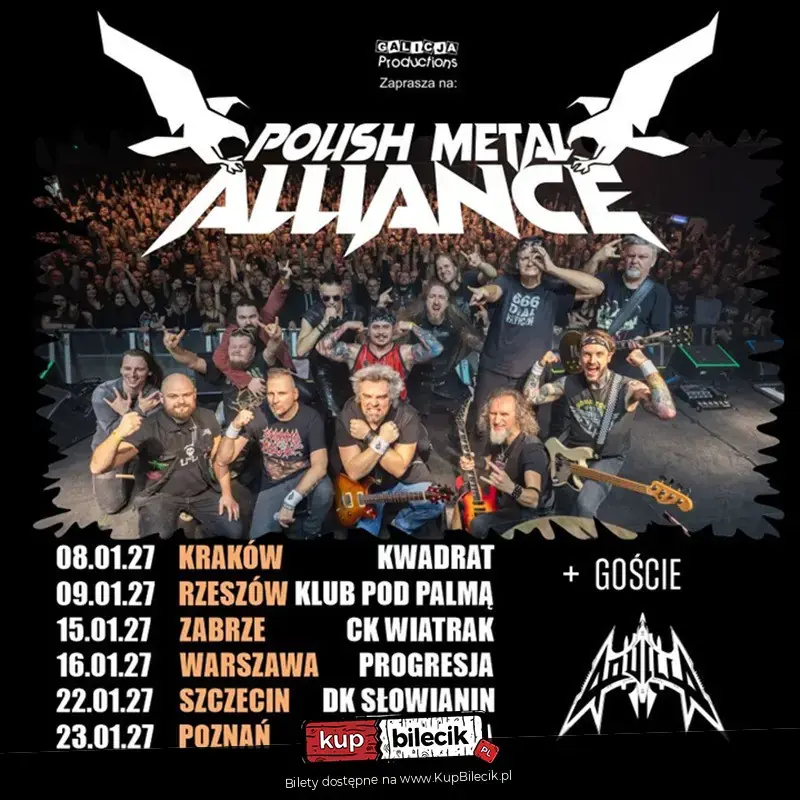 Polska scena metalowa łączy siły w wyjątkowym projekcie Polish Metal Alliance - wydarzeniu, które już teraz elektryzuje fanów ciężkiego brzmienia w całym kraju. Na jednej scenie spotykają się doświadczeni muzycy znani z kultowych zespołów oraz charyzmatyczni artyści młodszego pokolenia, tworząc niepowtarzalny skład, którego nie da się zobaczyć w żadnej innej konfiguracji.