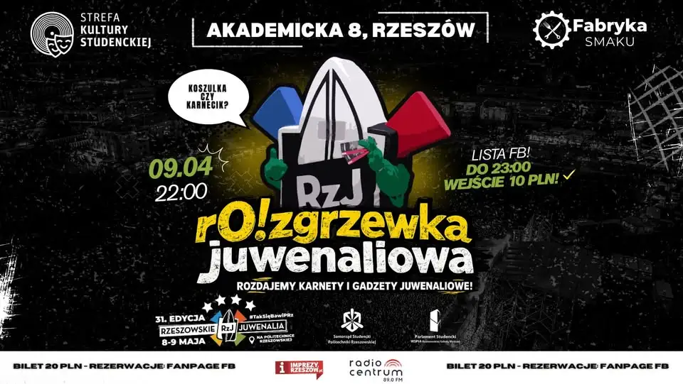 Atrakcje i konkursy: Podczas imprezy będzie można zdobyć karnety na 31. edycję Rzeszowskich Juwenaliów oraz liczne gadżety festiwalowe.