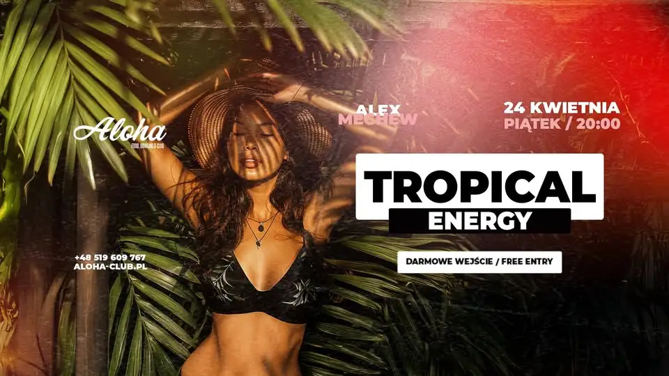 Piątek, 24 kwietnia zapowiada się wyjątkowo gorąco. TROPICAL ENERGY to propozycja dla wszystkich, którzy chcą poczuć egzotyczny klimat bez wyjeżdżania z miasta. W samym sercu Rzeszowa czeka noc pełna swobodnej energii, tanecznych rytmów i klubowej atmosfery, która nie pozwoli stać w miejscu.