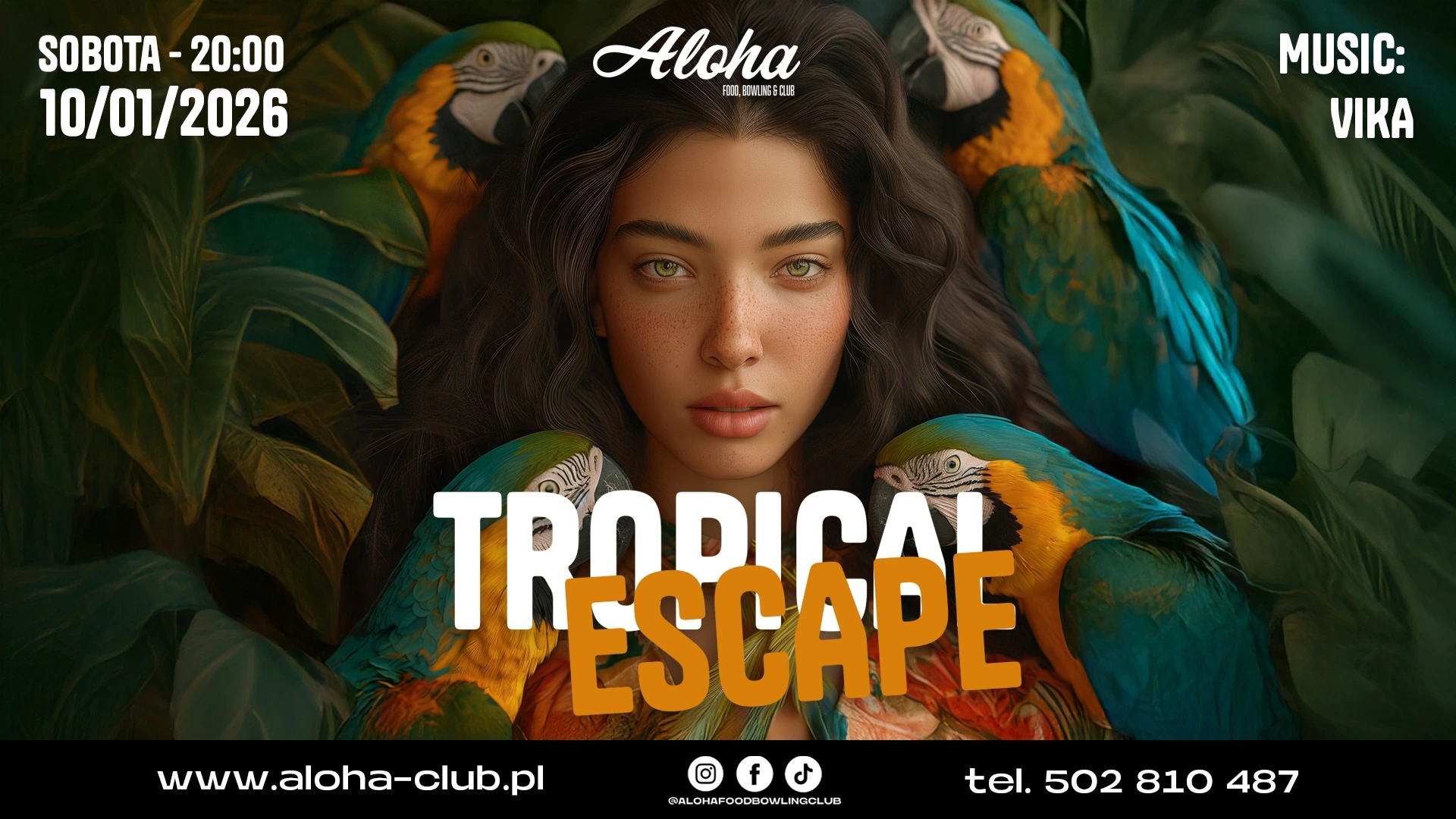 Uciekaj do tropikalnego klimatu bez opuszczania miasta. TROPICAL ESCAPE to noc pełna gorących rytmów, wakacyjnych wibracji i egzotycznej energii. Letnie brzmienia, taneczna atmosfera i klubowy luz sprawią, że na chwilę zapomnisz o codzienności. Daj się porwać tropikalnej nocy w Aloha.